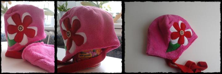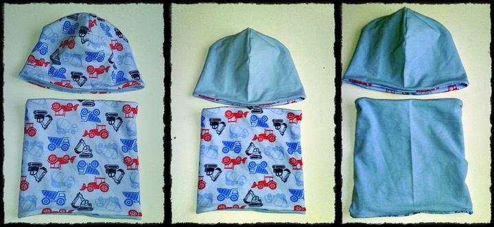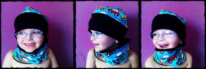 Další chvilka u stroje a vznikl tunelový nákrčník 🙂 do setu s čepkou 🙂