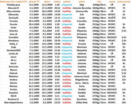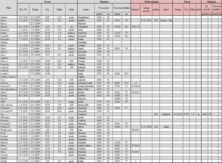 Nick Datum+ hodina porodu Jméno dítěte Míry po narození Míry v 1 roce