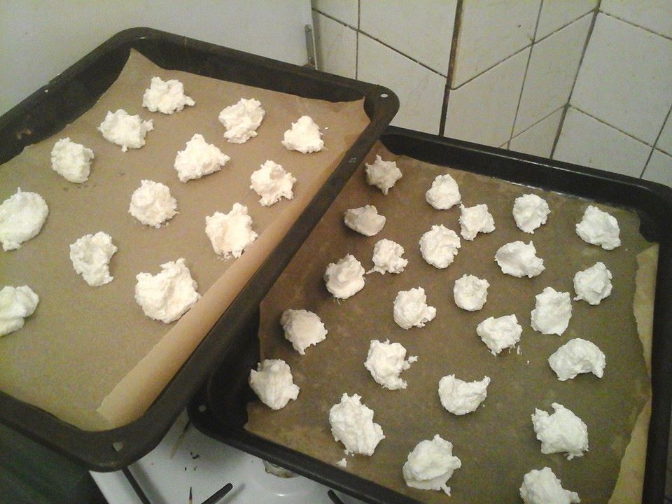 @junysek 5dkg cukru 5dkg kokosu a 5 bíltku. Bltky na paře vyšleháme do tuha s cukrem a až jsou pevné vmýcháváme kokos (ne šlehat) sních by padnul a bylo by to na...... peče se... Vyhřejeme 175°C po vložení pečeme 125°C na 30min.