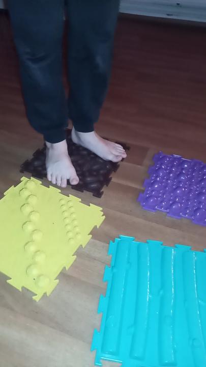 2. Země je láva - skákání po ortopedických puzzli. Později poznávání se zavázanýma očima