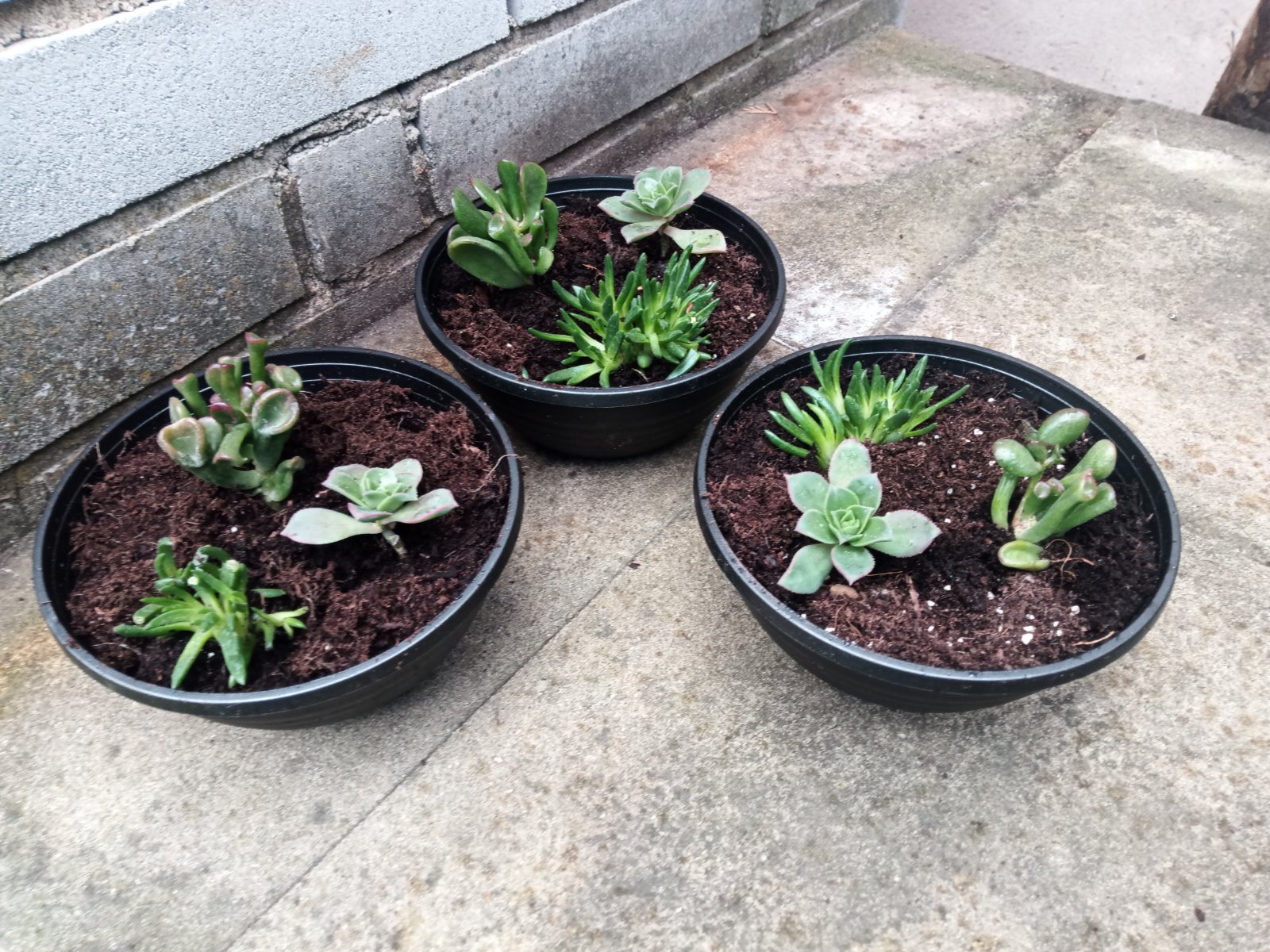 Nápad dobrý, realizace ma nejake mouchy 🙂 vypadá to trosku smutně, me tam chybí nějaký květ nebo barva. Ja osobně bych nevěděla, co s tim, kam to dat. Me by se líbil jen jeden sukulent, v barevném květináči a treba se zapichem srdickem, kytičkou, které by vyrobilo dítě. Nechceš aspon ty misky udělat barevné a ne černé?