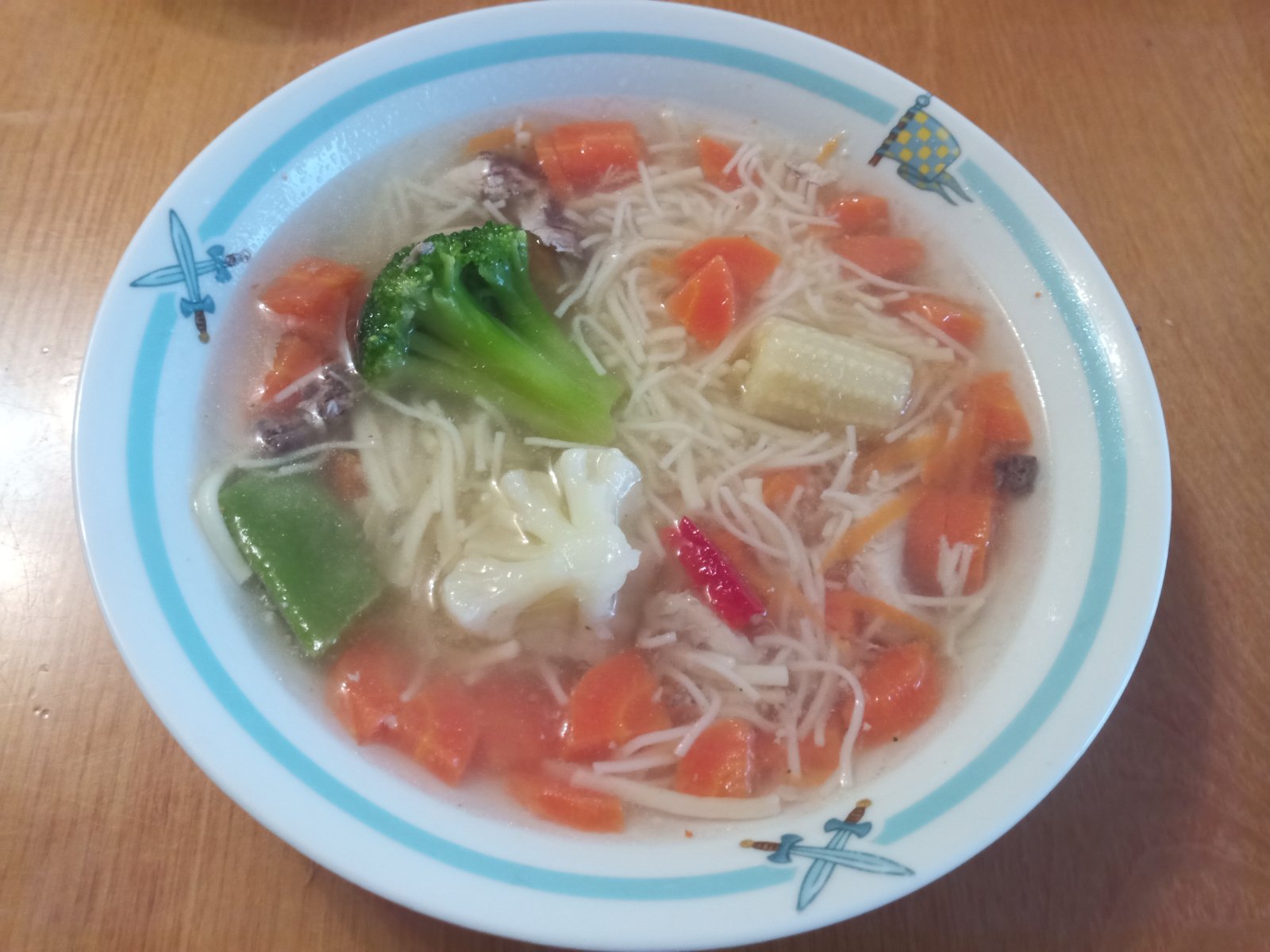 oběd: kuřecí vývar, brokolice, brambor