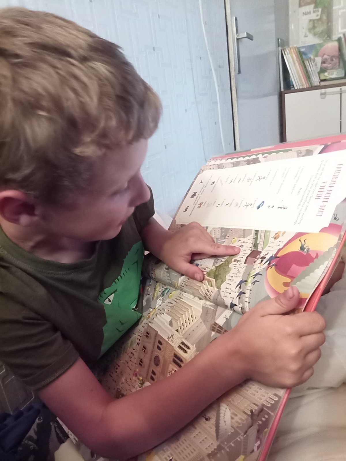 Tip na knížku(Máme půjčenou z knihovny a je bezvadná)Kluci, spíše starší, knížka je určena pro děti od 7let.Náš 6 léty zvládá.Jedná se o hledaci knížku. Máte tam najít určitý počet různých věcí a je to fajt malinké 🙂