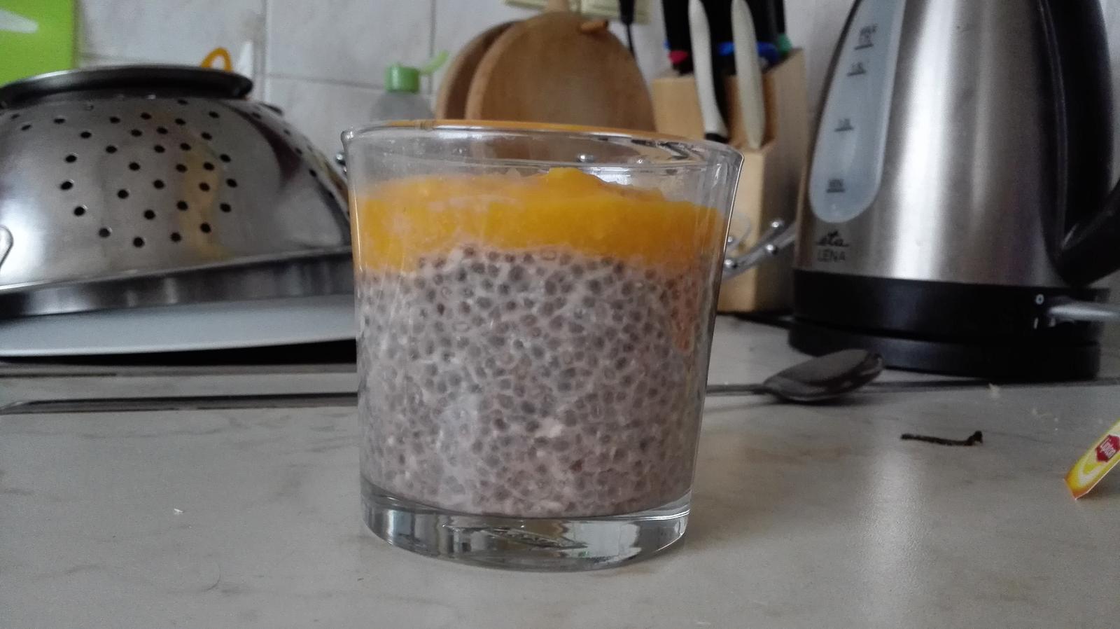 Chia pudink s kokosovým mlékem a mandarinkovým smoothie