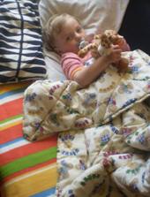6.září bude Káji přesně rok a půl, má už 16 zoubků a moc moc povídá. Má krásně kudrnaté vlásky, ještě jsme je nestříhaly jinak by byli vlnky pryč. Zrovna máme problémy s nožičkama, máme je moc do O, Kája nemůže moc chodit musíme na vyšetření kostí a bude mít na obou nožkách ortézky od vrchu až dolů...☹