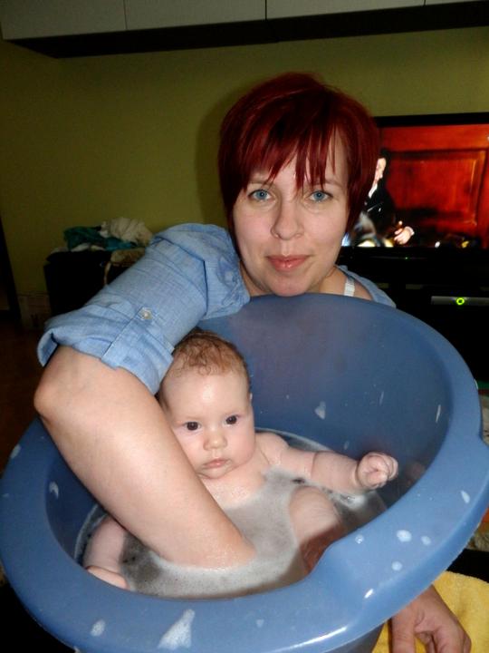 Date spat starsi dite, mladsi ukolibane v satku opatrne umistite do postylky, rychle poklidite kuchyn, uvarite kavu, nakrajite buchtu, vse strategicky umistite na stolek, zapnete notebook, kousnete do buchty, natahnete se po hrnu s kavou ..... a s chuvy se ozve roztomile zvatlani mladsiho potomka :D ja si to kafe snad nikdy v klidu nevychutnam :D :D