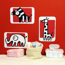 Tak tuhle kolekci opět v plném proudu testujeme na naší 3měsíční holčičce. Zvířátka jsme nalepili kolem přebalovacího pultu v koupelně a jakmile tam Babet položíme, kouká kolem sebe až si krk může vytočit. 🙂) Nejoblíbenější zvíře je ovšem slon a hroch.