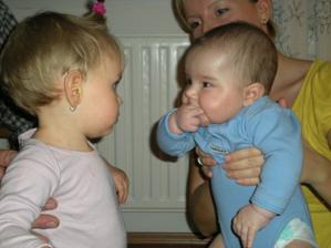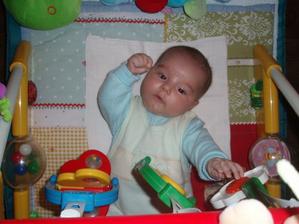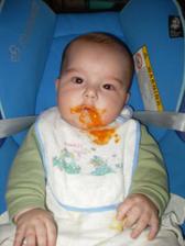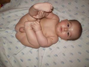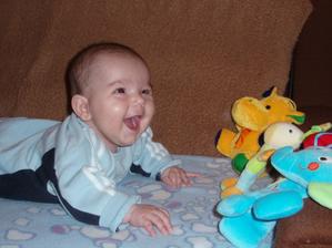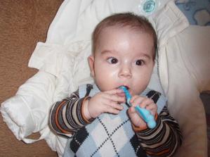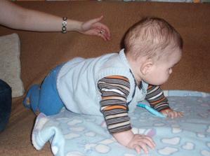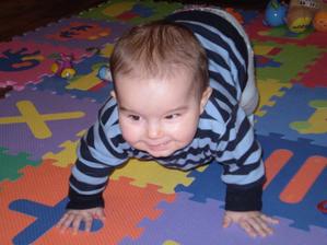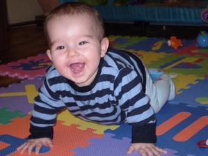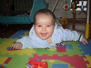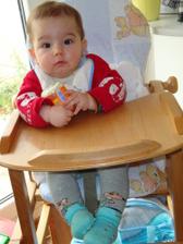 V šesti měsících vážíme 7 590 g a 67 cm a vyrostl nám první zoubek!!! Hned poté se vyklubal i druhý :o)) V osmi měsících vážíme 8 110 g a 70 cm a už krásně lezeme a začínáme se stavět na nožičky ....