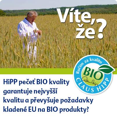 BIO není pro společnost HiPP jen nálepka na obalu. Kvalitu našich výrobků bereme velmi vážně, a tak jsme vytvořili vlastní přísný standard HiPP BIO pečeť kvality, který zaručuje, že naše příkrmy neobsahují vůbec žádné škodlivé látky. Pravidla pro získání HiPP BIO pečeti kvality jsou dokonce ještě přísnější, než jaké ukládají české i evropské zákony. Více: http://goo.gl/fTrltc