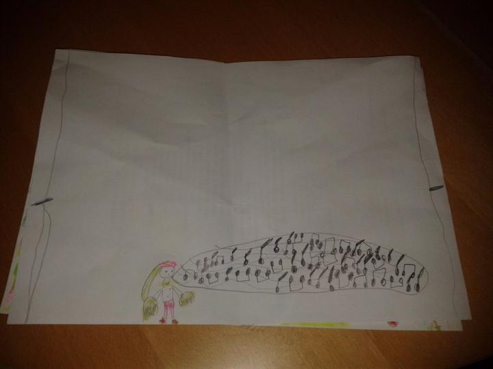 Dnes jsem zpívala na koncertě a před ním jsme měli zkoušku, kde na mě čekala i Valí. Měla něco nakreslit, tak rozpracovala tenhle výtvor. Asi jsme zpívaly fakt moc 😀