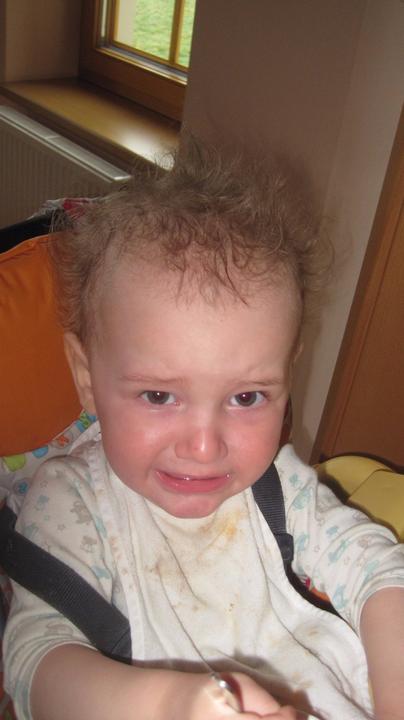 Nastane čas večeře Eliáše a čas pro další vytírání podlahy, neboť je po chvíli rýže s masem naházená v širokém okruhu židličky. Tak tedy běžím znovu pro mop a to už cedím skrz zuby nepublikovatelné výrazy. Po chvíli se samozřejmě strhne další reakce od naší madamme von Buchenwald, že tu večeři jíst NECHCE. Na mé saky paky balící nervy už to však bylo příliš. Trochu jsme si vyměnily názory, vyslechla jsem si, jak chce mít normální mamku a nakonec to zakončila slovy: "Mami, skrývej city!" Tak jo, končím s pohádkami, obzvlášť s Frozen. Všechno bude jednou použito proti vám.
