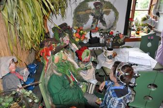 27.8. - taťka má ještě dovolenou a i když venku trochu prší, vyjeli jsme do Selibova do pohádkové kovárny. Cestou jsem na chvíli usnul, tak jsem byl rozespalý a půlku prohlídky jsem musel být u taťky v náručí a vůbec se mi tam nelíbilo,ale pak jsem se probral, nechal se oblíknout jako král a moc jsem si to tam užil. V dílničce jsme nakreslili vodovkama sádrového lvíčka, venku pak prošli stezku, kdy jsme odpovídali na pohádkové otázky a dostávali razítka, no nemohli mě pak odtud dostat😀