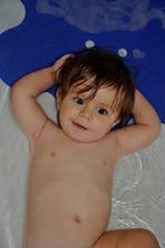1.8. - povedlo se mi konečně obrátit zpátky ze zad na bříško😉 a mamka mě vzala večer k sobě do velké vany, to byla sranda, učili jsem se dělat nožičkama cák, tomu jsem se pořád smál😉