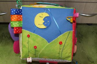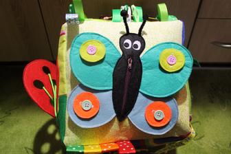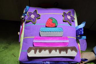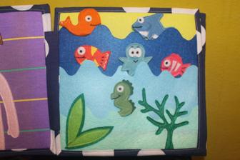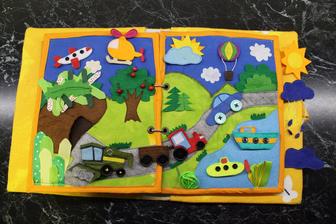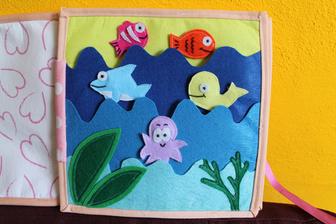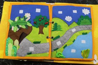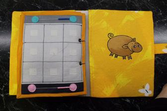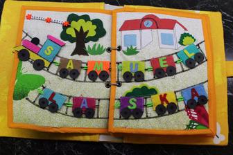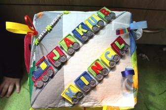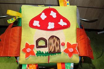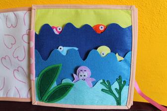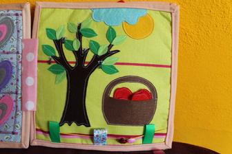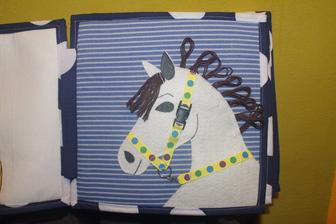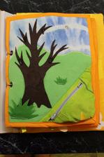 Tuhle knížku jsem šila průběžně přes půl roku (mezitím jsem pracovala i na jiných věcech), takže když vidím své první stránky, tak mě berou mdloby :D Tak prosím o shovívavost, šila jsem poprvé v životě :D Některé věci jsou už dost osahané nebo momentálně pohřešované, protože si s tím Samík od začátku hrál 🙂
