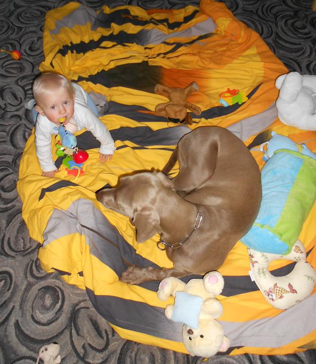 nějakým záhadným způsobem se Maty propídil až doprostředka pokojíčku z jeho hrací deky