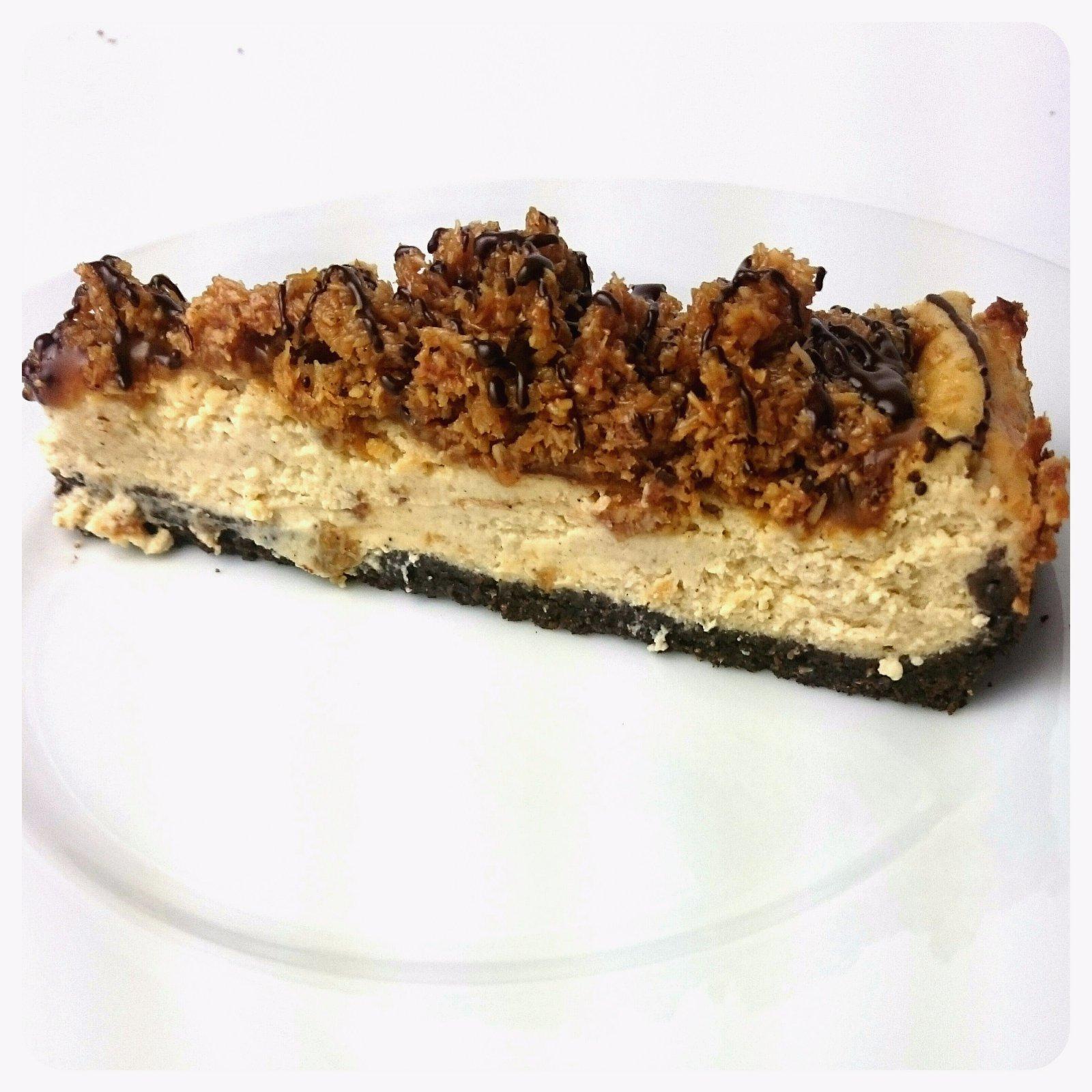 "Samoa" v pečení znamená to, že koláč obsahuje karamel, kokos a čokoládu. Tento má spodok z čokoládových keksov (oreo) a vrch z domáceho karamelu a nasucho opraženého strúhaného kokosu. Poliaty je horkou čokoládou.