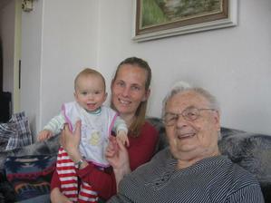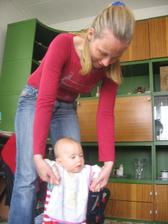 Na oslavě babiččiných narozenin se nám daří sedět i bez opory. Na zemi máma, nebo táta dávají oporu, ale už je to krásné sezení.