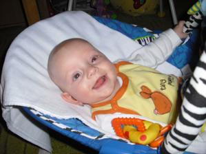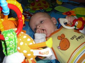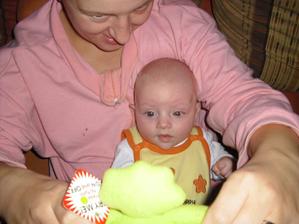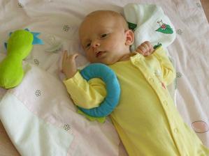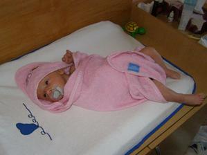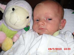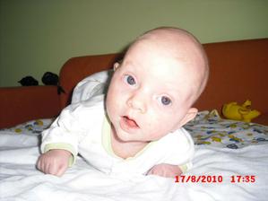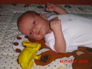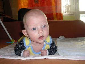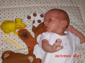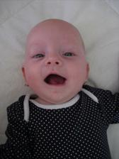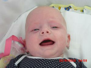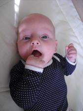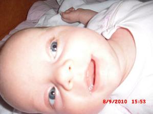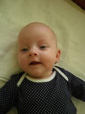 2.9.10 - poradna: váha 5330g, 58cm, byla pochválená, že hezky zvedá hlavičku, sleduje hračku a cucá si ruce. Trošku jí teče levé oko (už od narození) máme stále kapat oftalmoseptonex a masírovat koutek + kápnout ATB. Příští poradna 18.10. a bude i očkovaná s Prevenarem 13