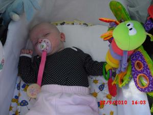 13.9.10 - Nás probudil monitor Nanny a tak jsem vylítla a bafla na Eli a ta se začala vrtět a koukat. Tak se asi zapomněla nadýchnout nebo závada monitoru? Nikdy se to nestalo .... a je nový. Každopádně, už jsem dál neusnula a bez monitoru, už nedám ani ránu. Opravdu adrealin!!!