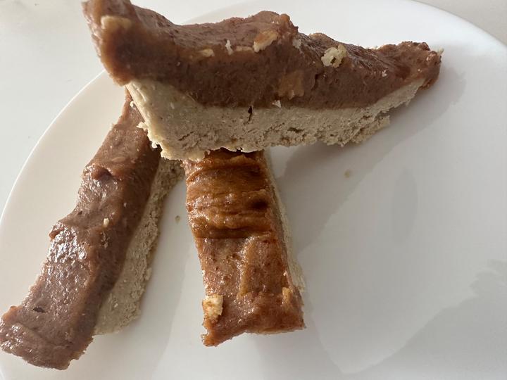 75g ovesné mouky+30g mandlové mouky + čekankový sirup+ghenamočené datle - 150g rozmixujeme, přidáme arašídové máslo (nejlépe slaný karamel), můžeme přidat trochu ghe a posypeme arašídy, které jsem zapomněla koupit 🙂