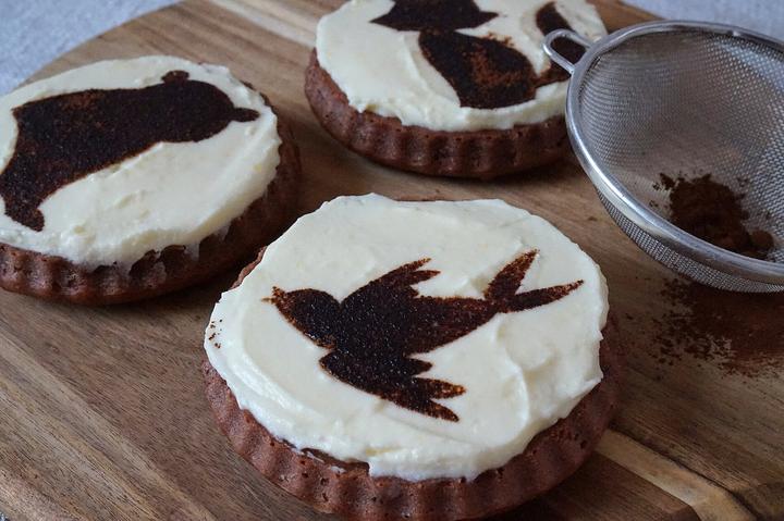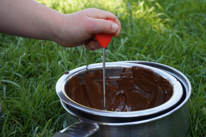 - Do umíchané polevy dát růžovou, fialovou a modrou gelovou barvu (na párátku) - párátkem "rozvířit" barvu - aby vypadalo jako galaxie.