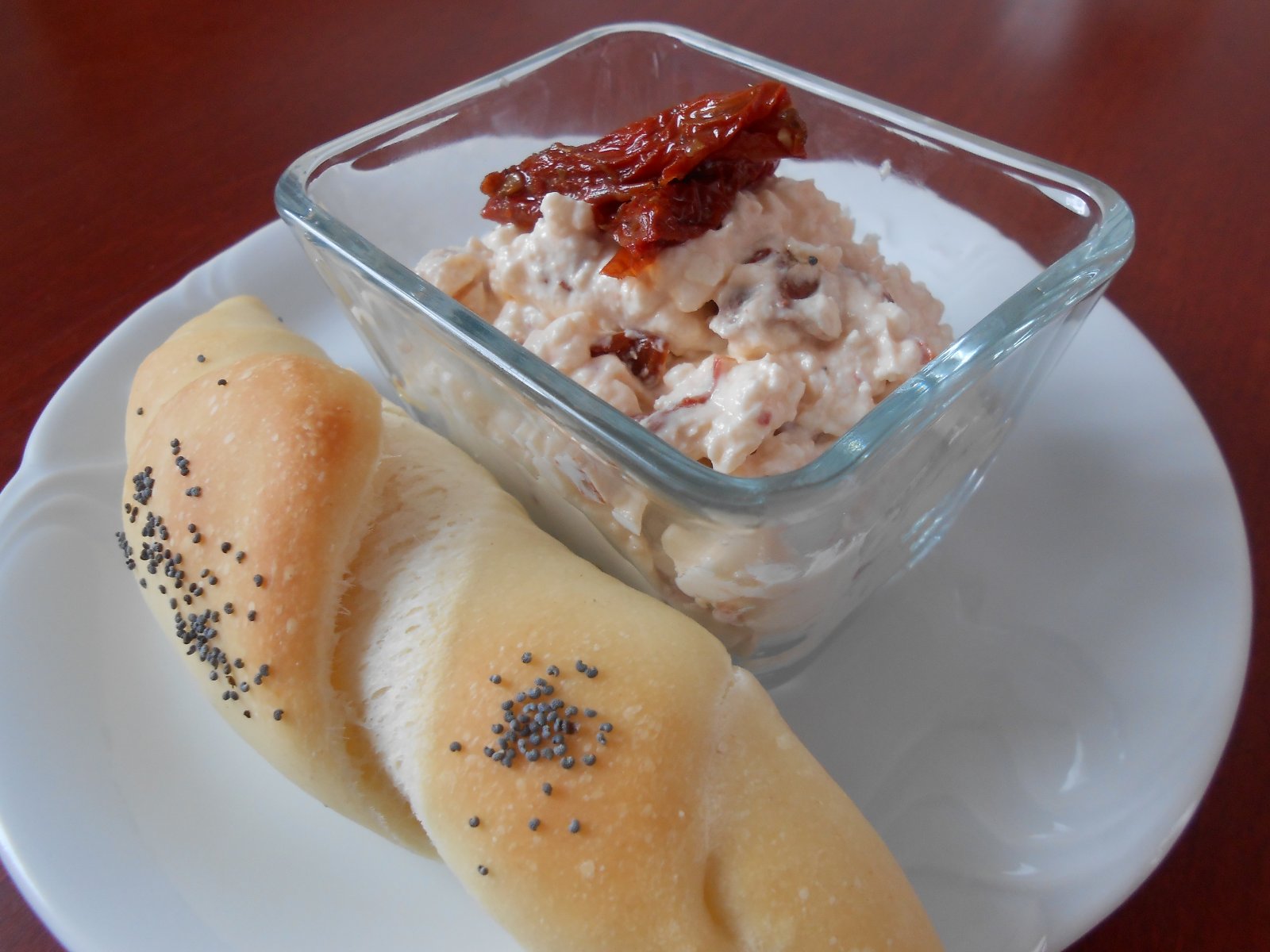 @fifina86@seb@vercajur200g balkánského sýru200g pomazánkového másla (já jsem dávala domácí lučinu)cca 6 sučených rajčatlžíci oleje ze sušených rajčatslané je to dost, může se opepřit🙂
