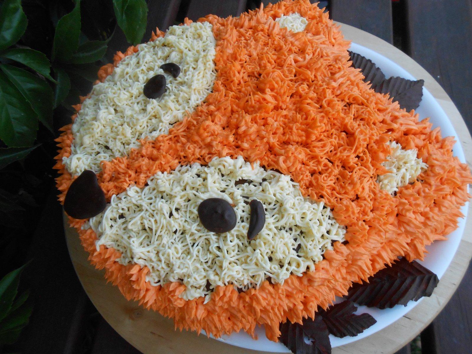 @olaj Na zdobení jsem využila zdobicí špičky Wilton (233 jemná srst, 234 hrubší srst). Očka, čumáček, lupínky jsou z čokolády - namalovat na pečicí papír a nechat vychladit v ledničce). Čoko lístečky - stačí natřít rozpuštěnou čokoládou lupínky a nechat v ledničce zatuhnout - pak sloupneme). Tak jsem snad trošku pomohla🙂))
