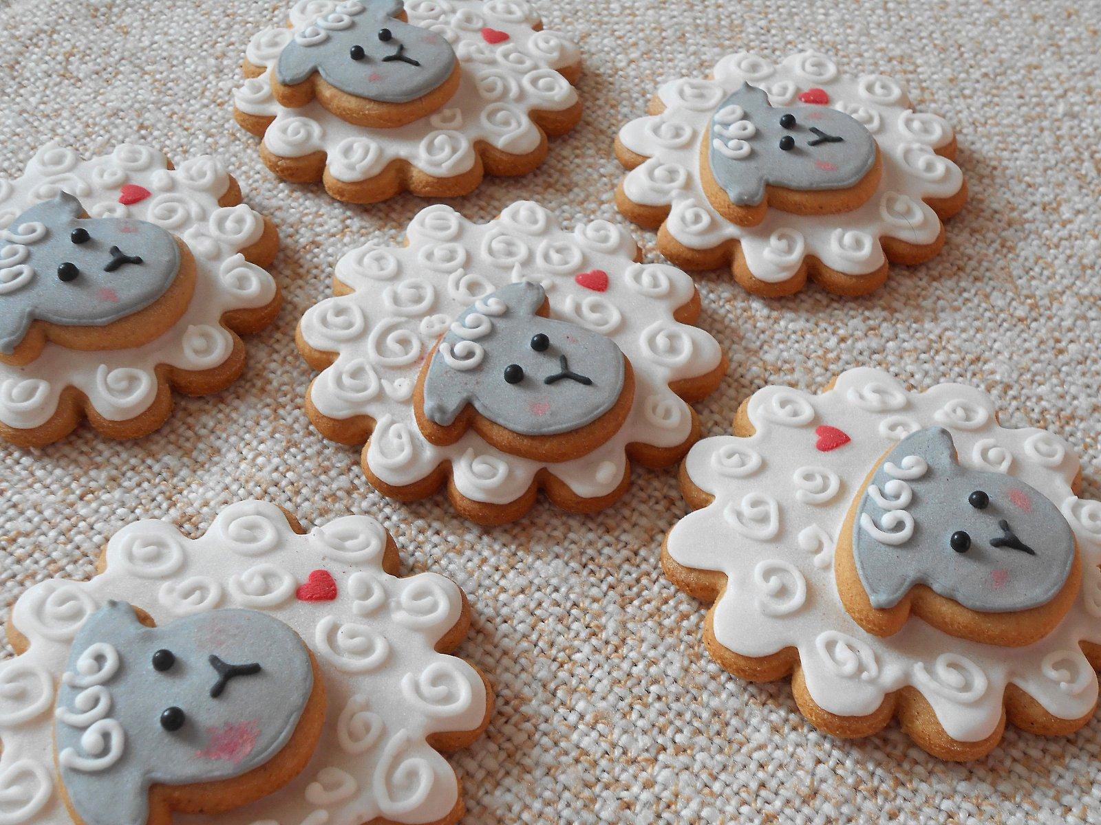 Zdobené je bílkovou polevou na zdobení perníčků + gelové barvy (hnědá je obarvená kakaem).