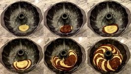 Do vymazané a vysypané formy jsem vrstvila těsto - střídala jsem světlé a tmavé.