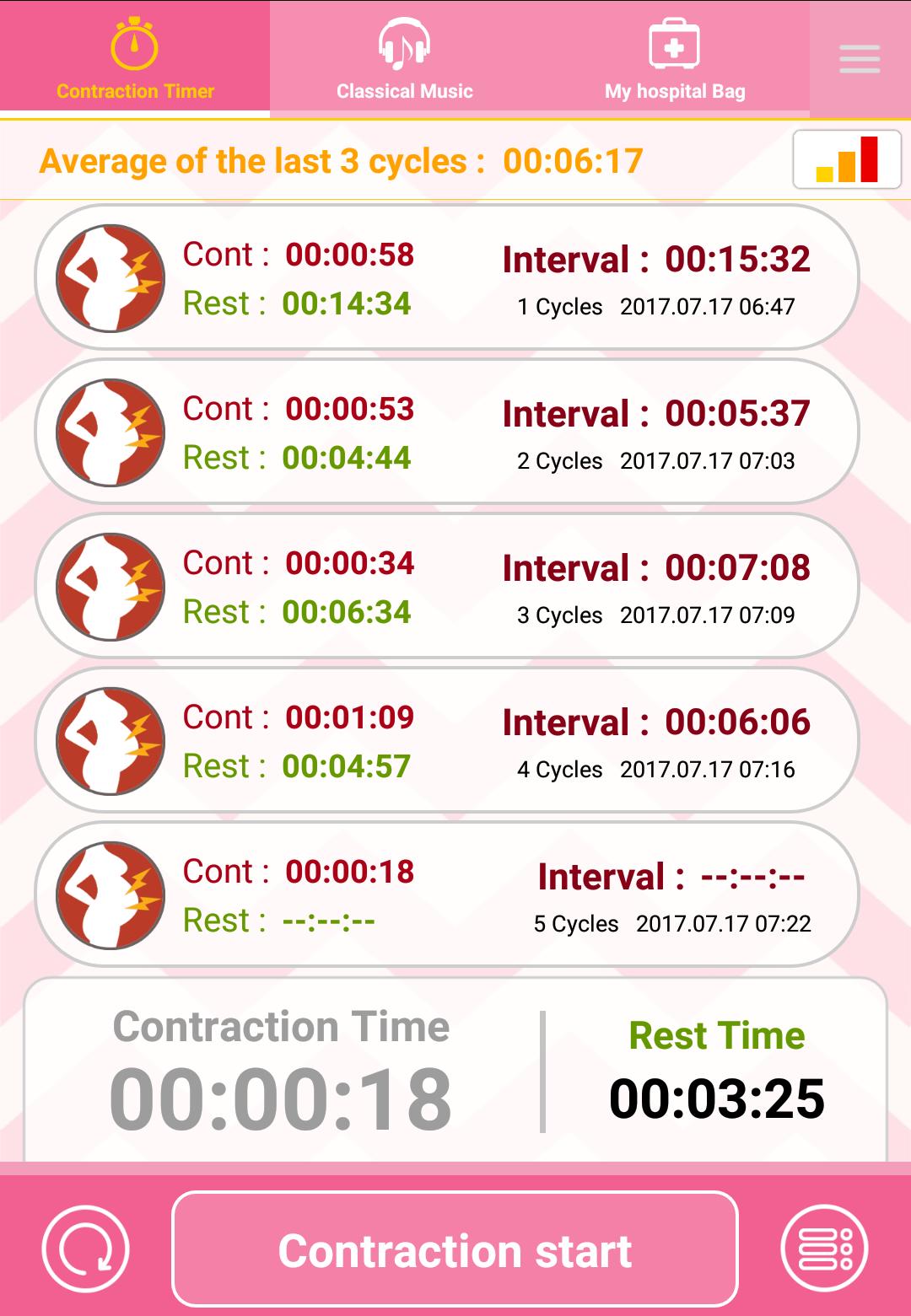 Já měla kontakce 3 dny. Extrémně silné už posledních 24h. A pravidelné nebyly vůbec. Takže jsem u porodu tlačilala prostě jak se mi chtěla opravdu sem nečekala na kontrakce. První den cca 30-20 minut, druhý 20-15 a třetí max 15 minut. Sestra (bratr lempl chytrolín) do mě pořád hustil že musí být pravidelné a do celého břicha 😂😂 ještě teď se směju když mu pan Dr řekl že jsou to kontrakce jak čuměl. Obvzláště po tom co jsem mu řekla, že jestli ještě vypustí z huby slovo poslíčci tak že ho mezi jednotlivýma "poslíčkama" udupu do země. 😂 Od té doby nevěřím nikomu. Každá sme jiná a proto to nemusí být vždy stejné. Nebo je tu druhá možnost že sem porodila během poslíčků asi podle pana bratříčka. 👌🏽