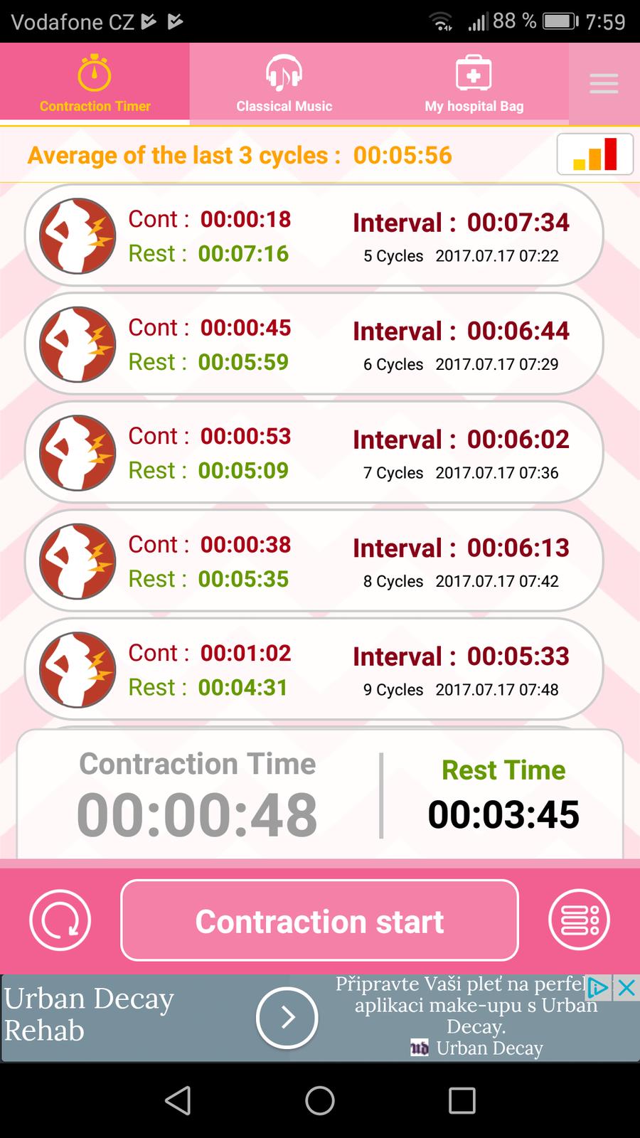 Ahoj maminy.. prosím o radu. Začínající kontrakce by byli úplně pravidelné? Nebo se to může lišit plus minus par minut? ...mam to uz hodinu cca po 6-15minutach. Nebo to nejsou pravé kontrakce kdyz to neni přesně po 10 minutách?