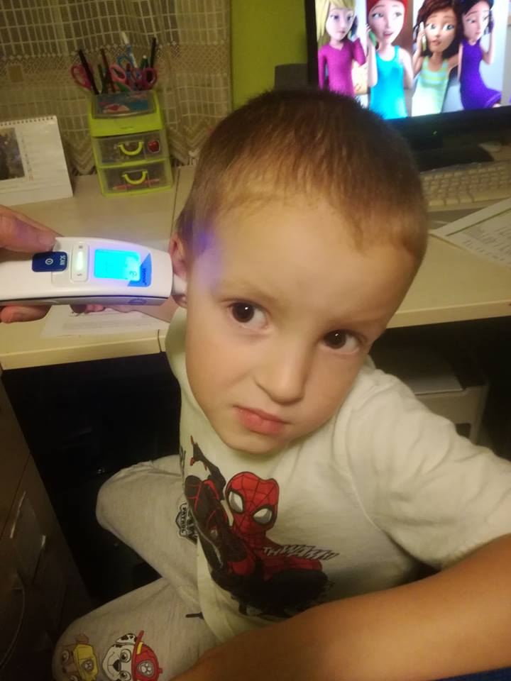 Ale, teď už k samotnému měření. Bezdotykové měření je naprostý luxus. Jednak není třeba dítě buditnkvůli každému podezření na teplotu, a pak je to také super, pokud třeba, jako já, máte doma malého, milého, hysterického chlapečka, který se normálního rtuťového teploměru bojí, držet ho nebude a brečí, jen když ho vyndáte. Takže, pro něj je tato varianta měření ideální. Teploměr si zamiloval natolik, že teď sám chodí, maminko, změř mi teplotu... a ještě v uchu 😀