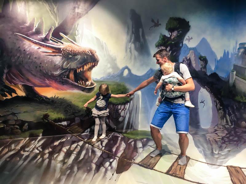 Naštěstí cestou se Laura uklidnila a v Tricklandii už bylo dobře. Moc jsme si to užili, jak iluze, tak třeba zrcadlové bludiště nebo obrácenou komnatu. A nejvíc byly pokoje ve stavu beztíže 🙂 Slabší jedinci si přibalí s sebou do tašky pytlík na zvracení 😀