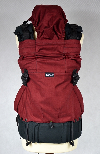 V hornej časti sa nachádza zrolovaná kapucňa na fixáciu hlavičky, ak dieťatko v nosiči zaspí.