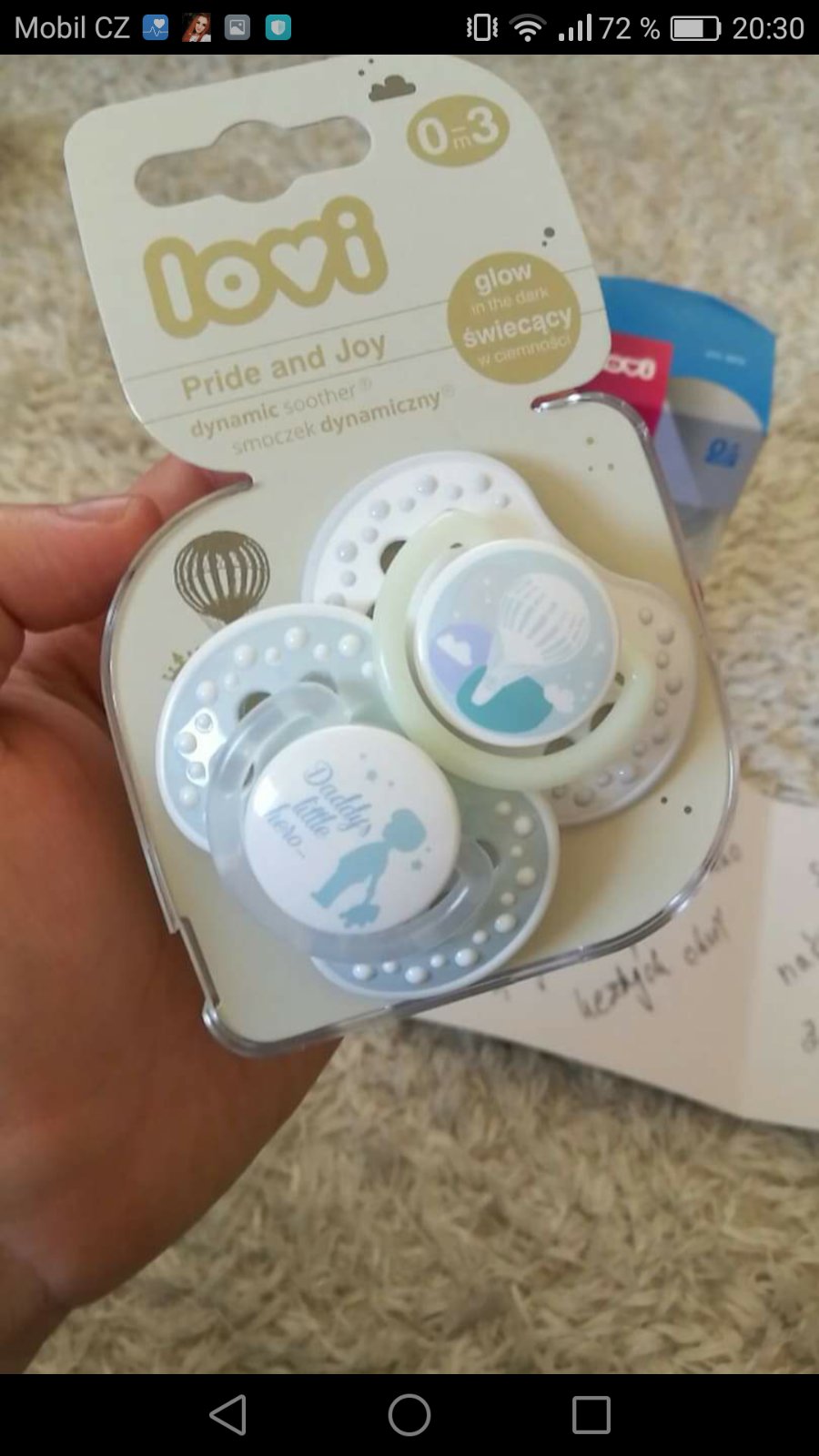 Dudlíky mají na první pohled krásný motiv, také je syn hned přijal a jeho staré od značky MAM už nechce 😅. Super výhoda je, že když je synovi dám do pusinky, tak nevadí, zda je dám tak či onak. Další plusem je, že jeden z dudlíků svítí, což velmi oceňuji v noci, kouknu a hned ho vidím. Oceňuji i to, že mají kroužek, díky kterému se dobře drží.