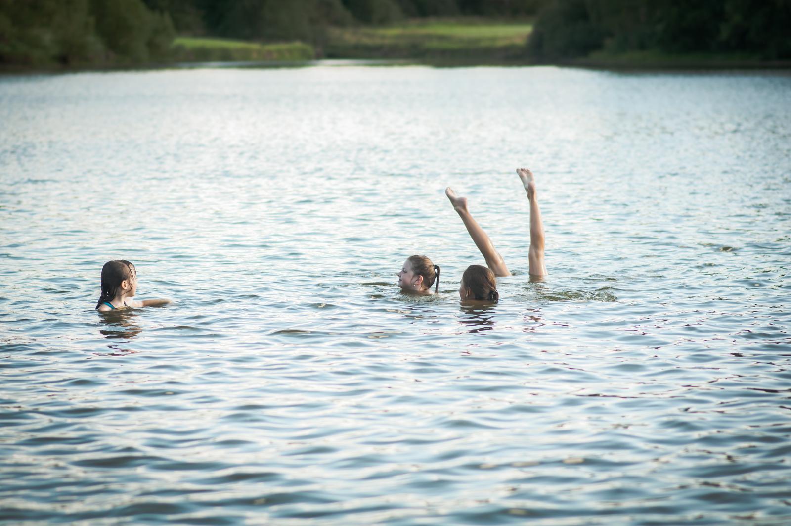 Po cestě se různě hecují, předbíhají a my se potíme. Pomalu se blížíme k cíli a nám dospělým začíná být pomalu jasné, že se blíží velké zklamání. Plotem obehnaná louže krčící se mezi rodinnými domky úplně nezapadá do našich vysněných představ o koupání. Tváříme se však stále nadšeně, nedáváme nic znát a naprosto suverénně se obracíme k rybníku, který kouká z lesa o kus dál, ženeme děti po hrbolaté louce (naštěstí z kopce) k vodě. Dorážíme k něčemu, co vypadá jako rozpuštěné zelené želé. Někdy se tomu říká, že voda kvete, ovšem to je zcela jasně eufemismus. Tady je voda jako brčál, a ač jsme matky otrlé, nějak si neumíme představit naše drobky, jak svými nafukovacími rukávky víří tento jistě výživný humus. Nutno dodat, že přístup do vody byl dost adrenalinový, ale to jsme byly odhodlané vzhledem k stoupající teplotě a napětí překousnout.