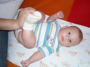 V 6. měsíci vážím 8100g a měřím 67cm...lezu po čtyřech dozadu a mám dva zuby dole 🙂 V 8. měsíci vážím 8600g a měřím 71cm, moje hlavička má 44cm, lezu krásně rychle po čtyřech, stavím se na dvě nožky o nábytek, žvatlám, když mám dobrou náladičku a prořezávají se mi zuby nahoře a dost to bolí! Další fotky najdete tady.