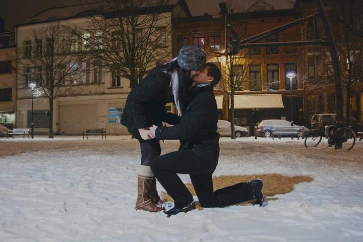 Díky FB na mě dnes vyskočilo upozornění, že je to přesně 6!?!? let od zásnub, o kterých jsem do posledního momentu nevěděla... tou dobou jsem studovala v belgických Antverpách a v domě bydlela ještě s dalšíma studentama... byli to španělé - jeden kluk a dvě holky. Jedna z nich tam studovala uměleckou fotografii a tak jsem si říkala, že až za mnou můj přijede, že se půjdeme projít a nafotí nám "rande"... no jenže než jsme ušli 200m od domu, tak se to stalo... takže shodou náhod to máme zdokumentované...
