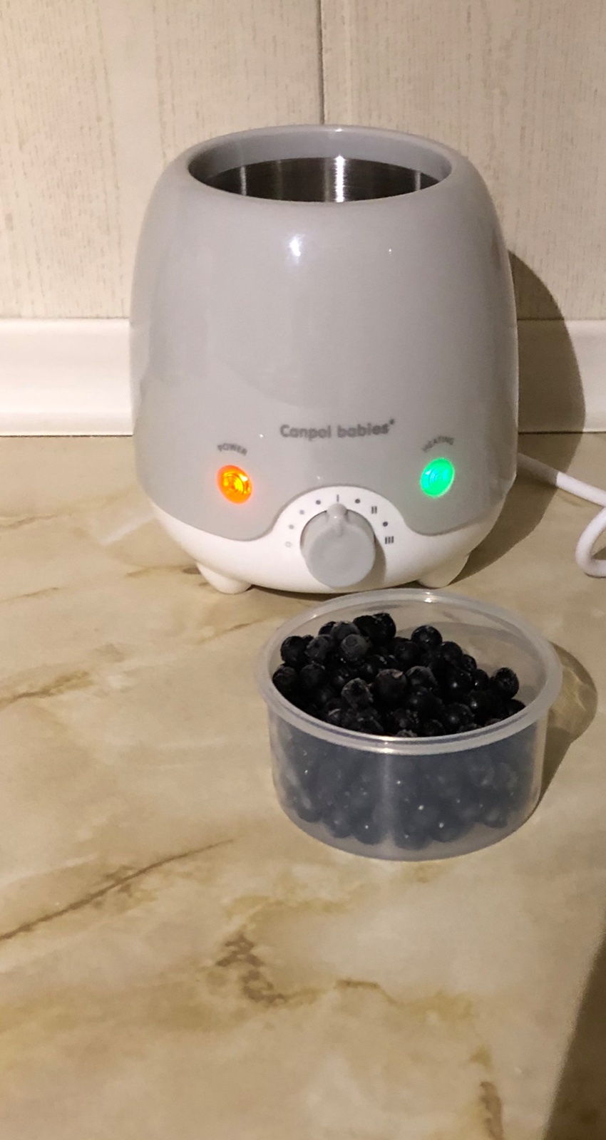 Mističku jsem naplnila opravdu celou a zkusila dát teplotu zhruba na půlku. Teplota byla celkem rychle, a začala jsem odpočítávat dobu, než se borůvky rozmrazí. Trvalo to přesně 15.minut. Myslím, že na vyšší teplotu by to určitě bylo rychleji a pokud bych nenaplnila mističku až po okraj, určitě by to také netrvalo tak dlouho🙂