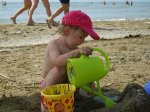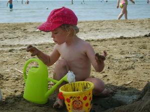 Tak jsme s mamčou vyrazili na dovolenou do Itálie do městečka Caorle.Taťku jsme nechali doma a 11.6.10 ve 21hod. jsme v Říčanech nasedli do autobusu,který nás dovezl až do kempu Falconera...bylo to tam nádherné.Bydleli jsme ve stanech a moc se mi to líbilo..hned za kempem byla široká pláž a za ní moříčko,ve kterém se mi krásně koupalo,protože min.20m od břehu jsem měla vodu po kolínka a při přílivu max. po pupík..Takže se o mě mamča nemusela a bát a já se taky nebála a hezky jsem si hrála.Lovila jsem mušličky a živé krabíky....no prostě pohádka.Příští rok pojede zase a na stejné místo,ale to už s nám pojede i tatínek a prý pojedeme autem a ne autobusem..tak se moc těším=o)