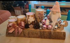 Jednou jsem u manželovi sestřenky viděla na tácku různé vysoké skleničky, postavené vzhůru nohama a náplněne bancickami či jinými vánočními ozdobami, okolo větev jehličnanů a na skleničkách čajové svíčky, vypadá to hezky i bez ozdob, takže jakoby vyrábíme, ale rychle že skleniček :D okoukala jsem to od ní a je to boží, rychle, jednoduché a krásné