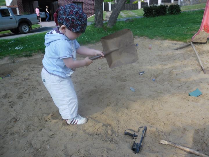 tatínek je momentálně v akci-brání auta na ulici před nájezdy našeho Velkého řidiče na baterkovém autě 🙂 🙂 🙂