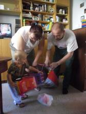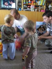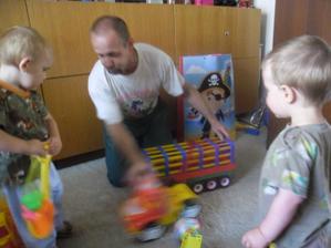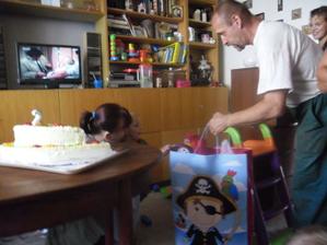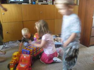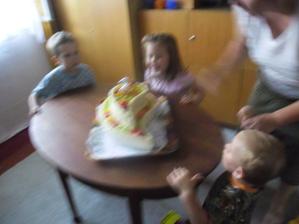 tak se nám přece jen podařilo úspěšně ty druhé narozeniny oslavit i s havárkou vody-těsně před dokončením dorty a finálním úklidem nám praskl hlavní přívod vody do kuchyně,tak se oslava o hodinku odložila s mým modlením aby vůbec byla,tatínek přišel jen rychle pomoct a spravit vodu a pak musel zpátky do práce,takže nakonec se z pohodového dne vyklubalo pěkně hektické odpoledne,ale pár foteček jsem stihi,dort skoro snědli,no rozhodně to Marečkovi na radosti z dárečků a řáděni s kamarády neubralo a tak to má být