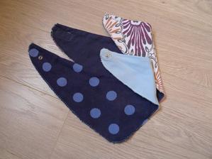 Modrá puntíková, modrá hříbečková a hnědá květovaná jsou z obchodu http://www.patchworkmanie.cz/, fleece a šusťák z Karsu v Brně, PUL z http://www.unuodesign.cz.