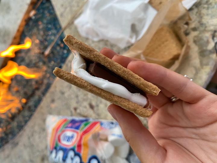 Let byl v poradku a moc se nam tady libi. Sli jsme k bazenu (viz moje vlasy :D), na prochazku a do obchodu. Koupili jsme si veci na s’mores (cokolada, marshmallow a graham crackers), jelikoz ma nas pokoj “fire pit”, ktery nutne potrebuju domu :D.