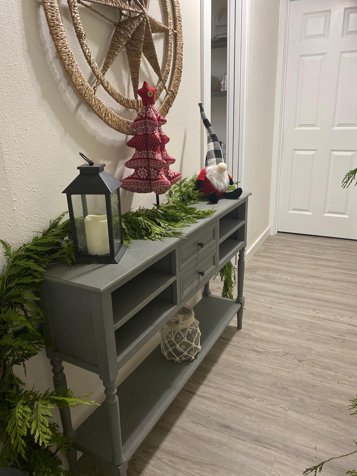 Letos jsem se pustila do vyroby girlandy. Vyrabet vanocni dekorace me bavi, bohuzel na to neni moc casu. Nakonec jsem ji udelala az moc a mimo schodiste mi zbyla jeste na mensi uzky stolek, ktery je take vanocne ozdobeny.
