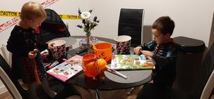 My se celá rodina namaskovali už ráno - děti byly nedočkavý, pak jsme se sestrou a jejíma dětma šli ven a zahráli si discgolf a po příjezdu domů si děti šly hrát. Se ségrou jsme nachystaly nějaké haloweenské zobaní - domácí i kupované, poseděli jsme, popovídali si, dospěláci si dali víno, děti šťávu z dračí krve (malinovou) a večer jsme si pustili Coco. Naše děti to viděli poprvé. Krásně jsme si to užili. A pokud by někoho pohoršovalo, že se scházíme se sestrou a její rodinou - bydlíme ve stejném domě, hlídáme a vyzvedáváme si děti, pomáháme a staráme se o sebe.. Každá má svůj byt, ale vídáme se denně, minimálně na procházku do parku..