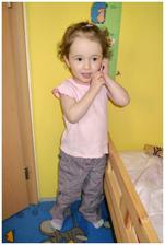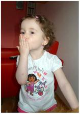 Vlásky jsou jak kdy, někdy se jí to točí děsivě na všechny strany a vypadá jak medůza a chobotnice dohromady a někdy se stočí do pěkných kudrlinek..