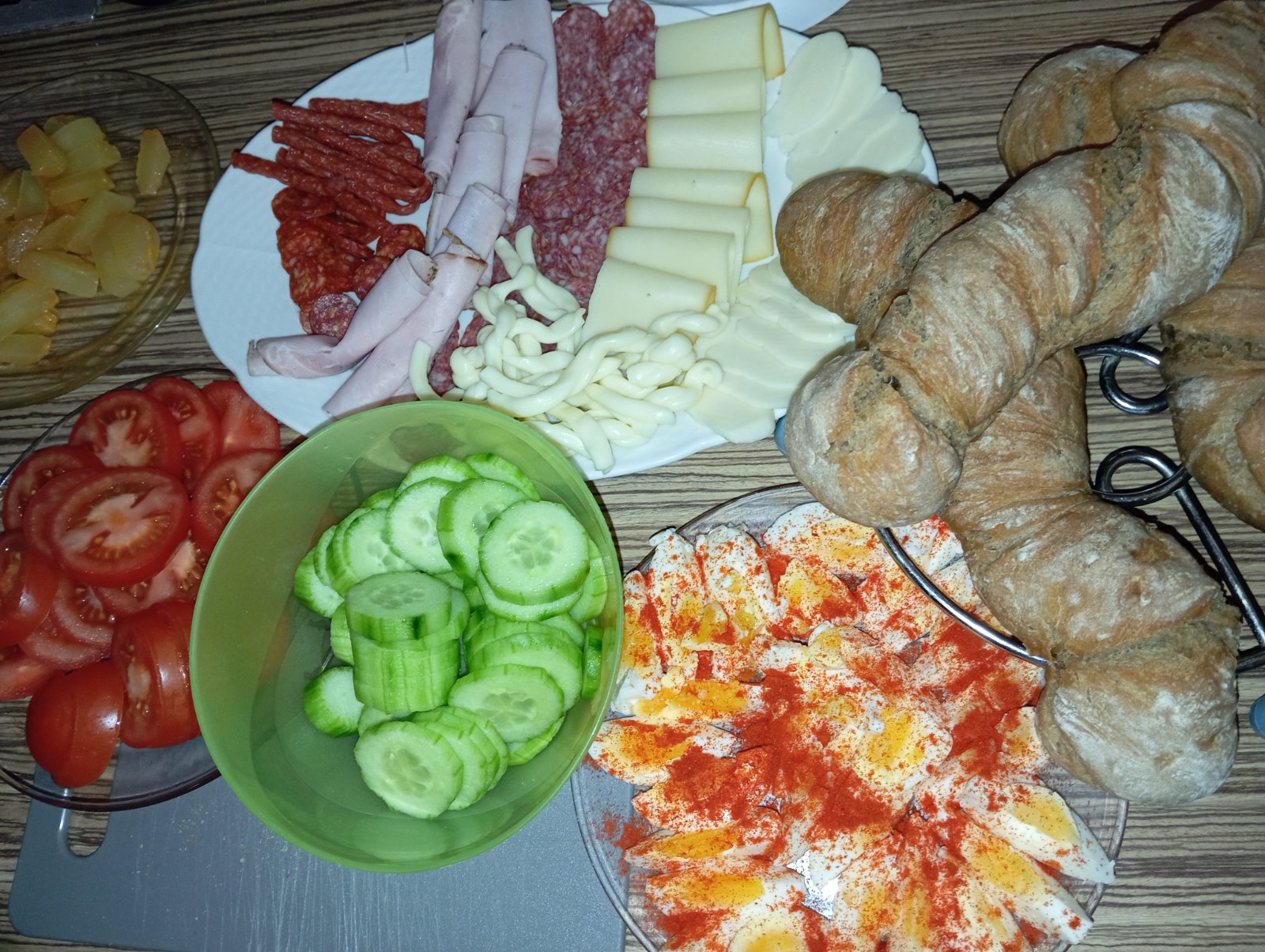 Dnešní večeře a pečení. Já ty kořenové bagety zbožňuji.