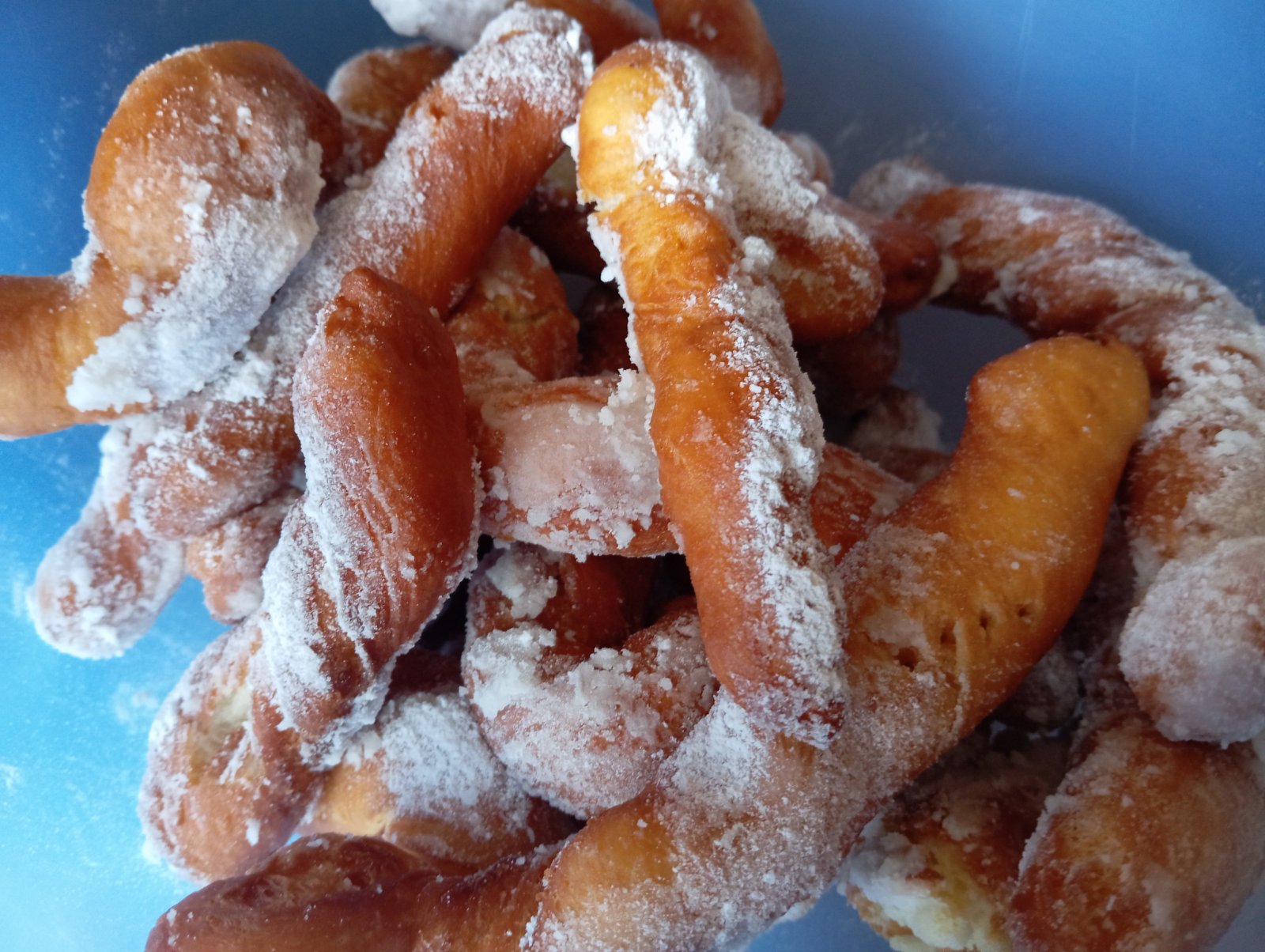 Ráno s krouťákama...jsou to vlastně suché koblížky z kynutého těsta ( těsto klidně na buchty, vánočku). U nás jsou žádané.